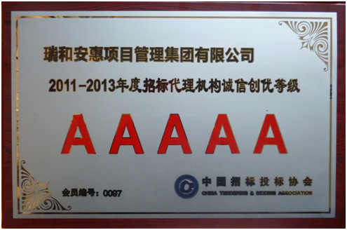 12月28日,2011-2013年度招标代理机构诚信创优总结大会在京隆重举行,瑞和安惠项目管理亚新注册再获“中国招标投标协会2011-2013年度招标代理机构诚信创优5A等级”殊荣。